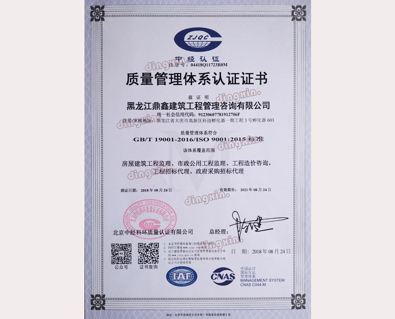 黑龍江鼎鑫建筑工程管理咨詢有限公司成立于2005年,注冊資金400萬元。具備中華人民共和國住房和城鄉(xiāng)建設(shè)部批準(zhǔn)的工程招標(biāo)代理機(jī)構(gòu)資格、中華人民共和國財(cái)政部批準(zhǔn)的政府采購招標(biāo)代理機(jī)構(gòu)資格、黑龍江省商務(wù)廳批準(zhǔn)的機(jī)電產(chǎn)品國際招標(biāo)代理機(jī)構(gòu)資格、中華人民共和國住房和城鄉(xiāng)建設(shè)部批準(zhǔn)的工程造價(jià)咨詢甲級(jí)資質(zhì)、黑龍江省住房和城鄉(xiāng)建設(shè)廳批準(zhǔn)的房屋建筑工程監(jiān)理乙級(jí)(市政公用工程監(jiān)理乙級(jí)資質(zhì))。主要從事建設(shè)工程及政府采購招標(biāo)、造價(jià)咨詢、工程監(jiān)理、項(xiàng)目管理等業(yè)務(wù)。